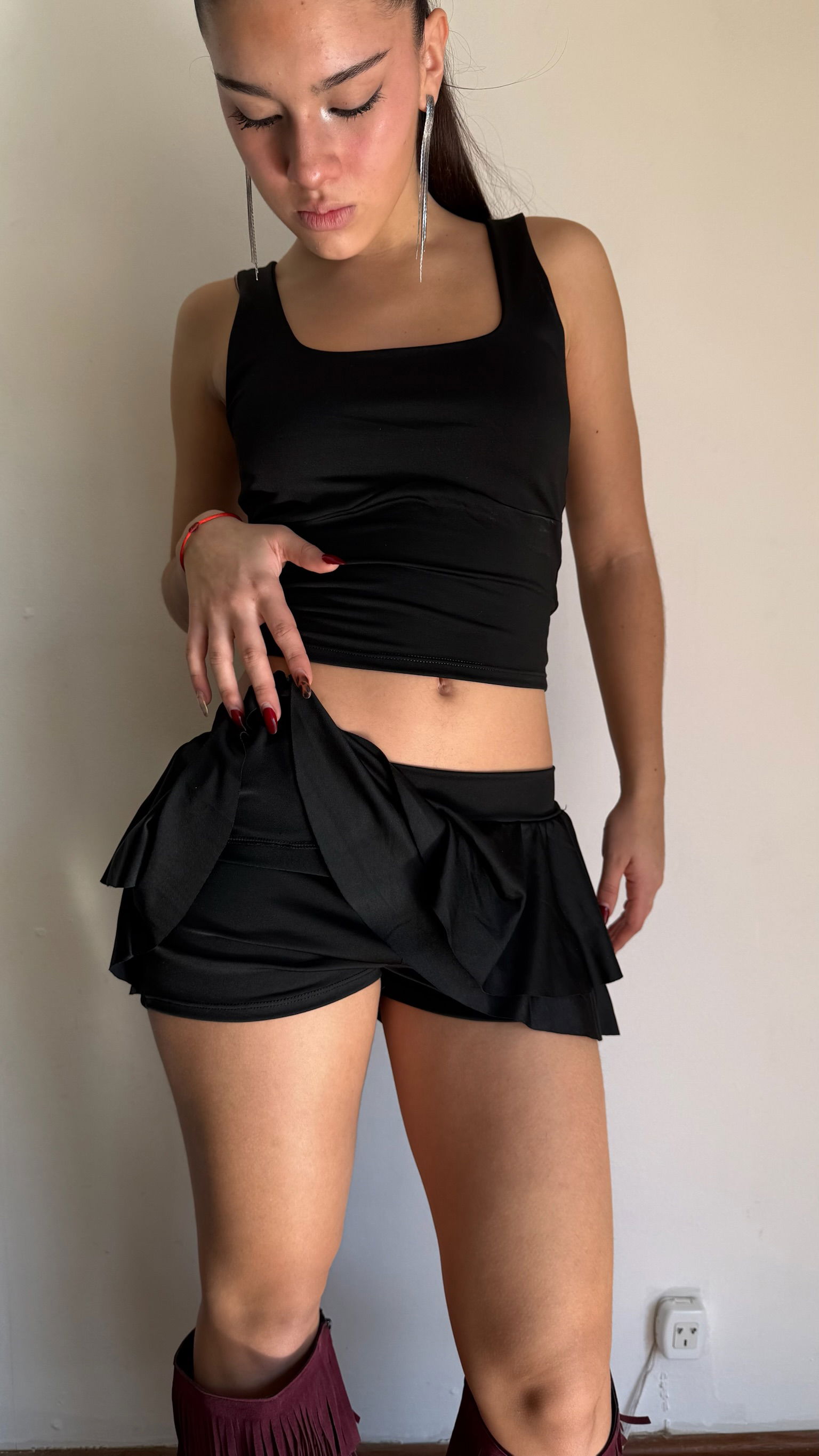 mini con volados y short incluido