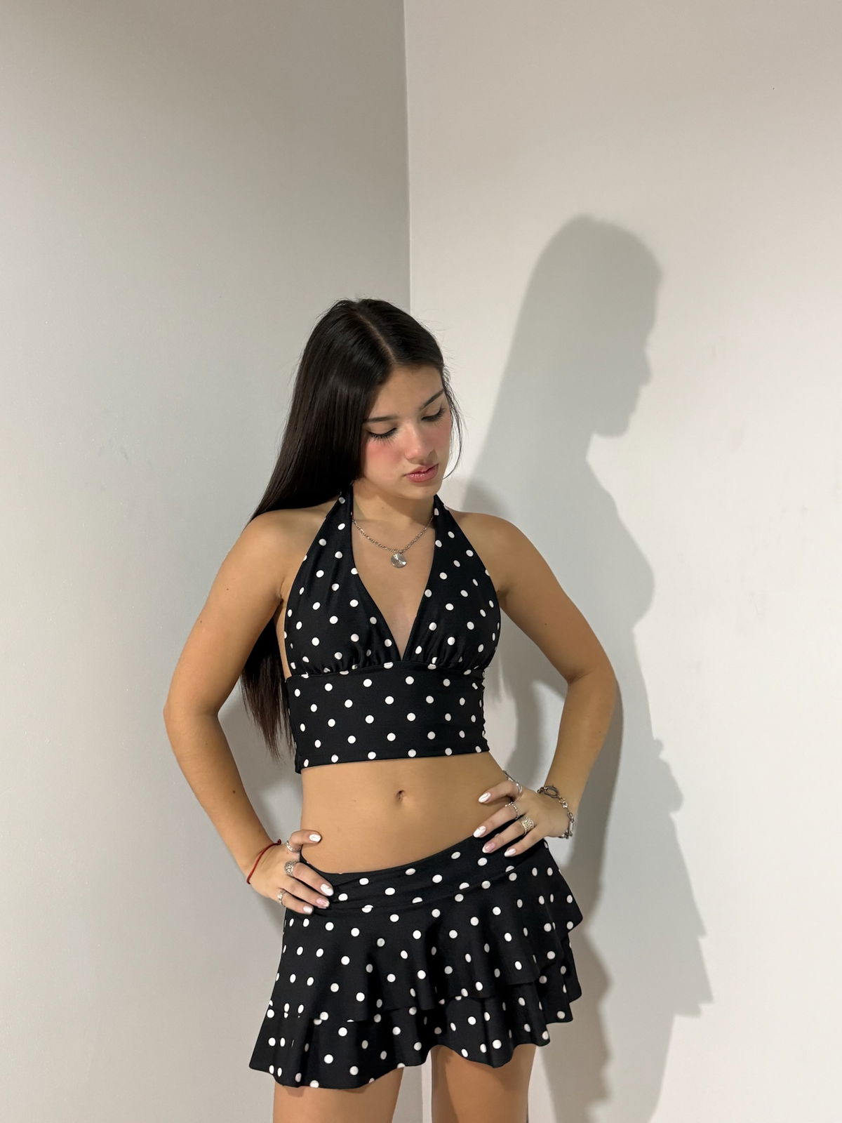 mini con volados y lunares