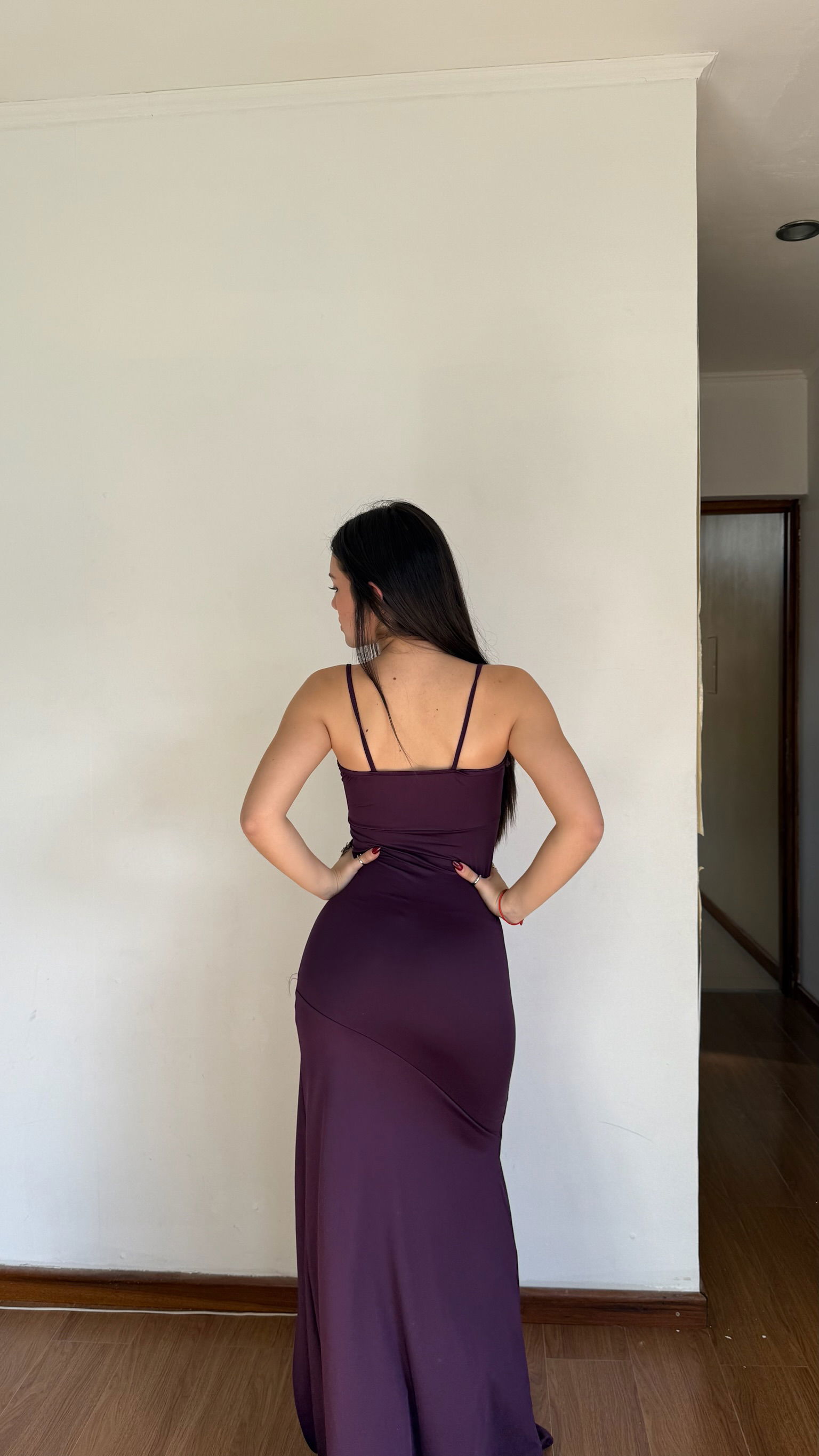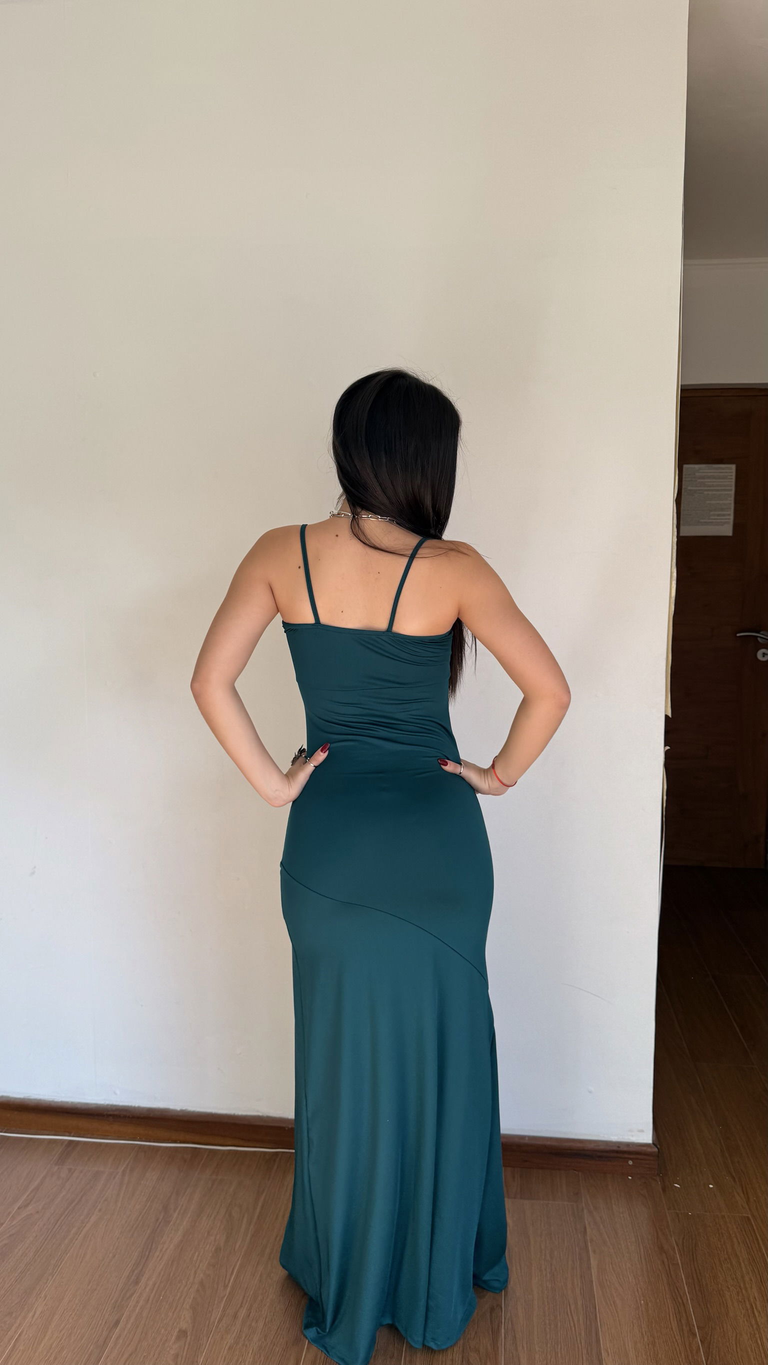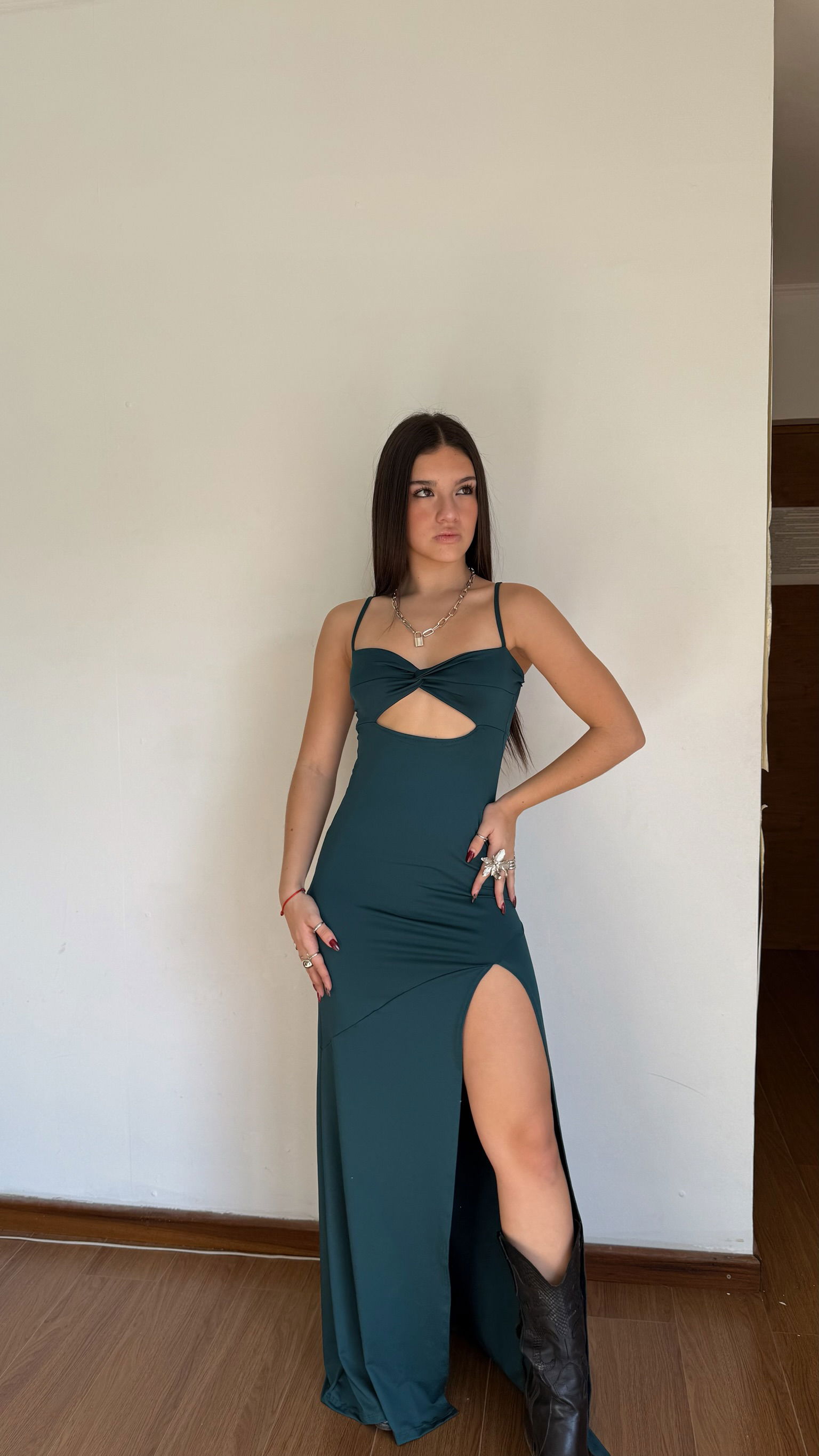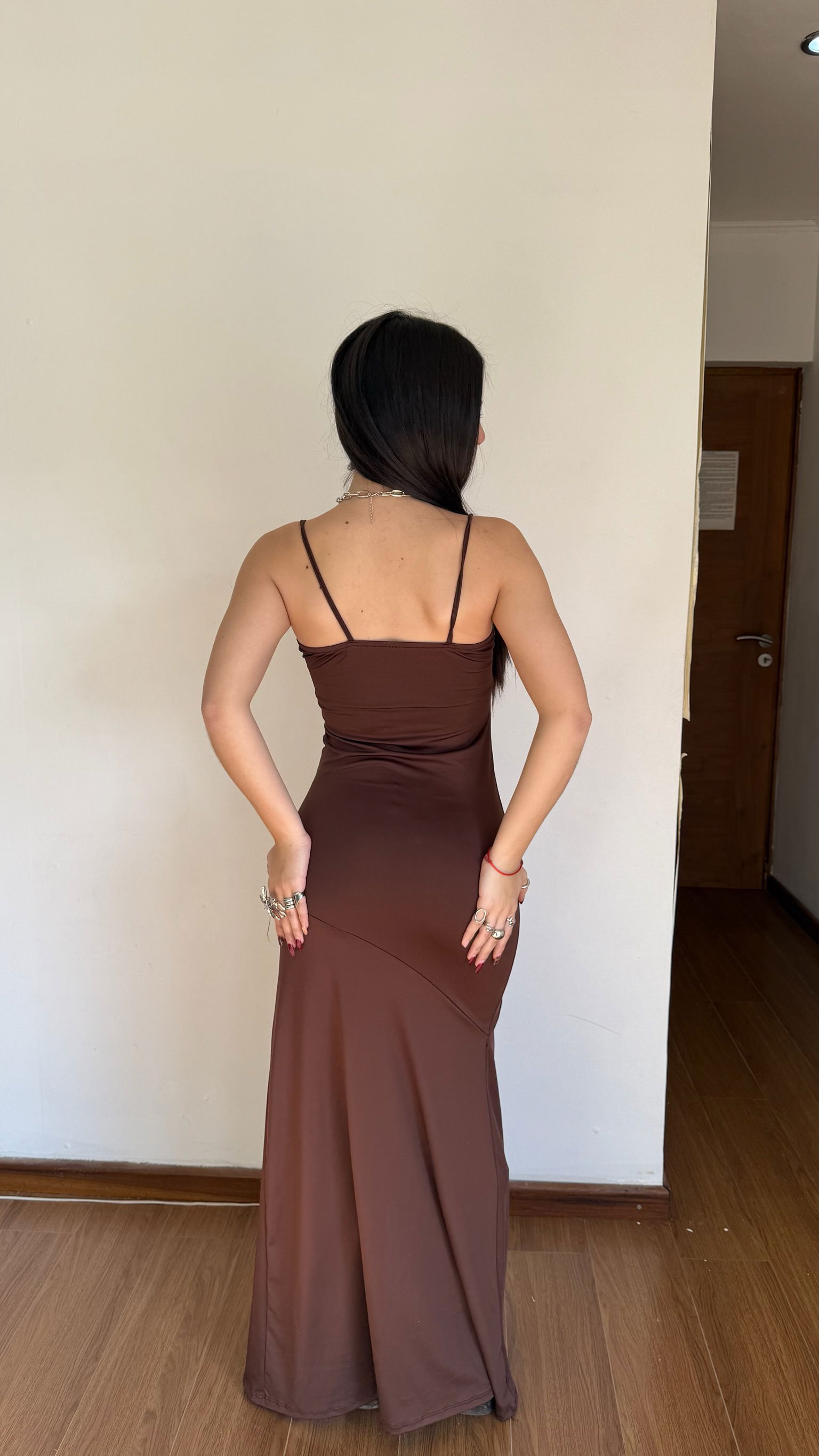 vestido largo con breteles y nudo