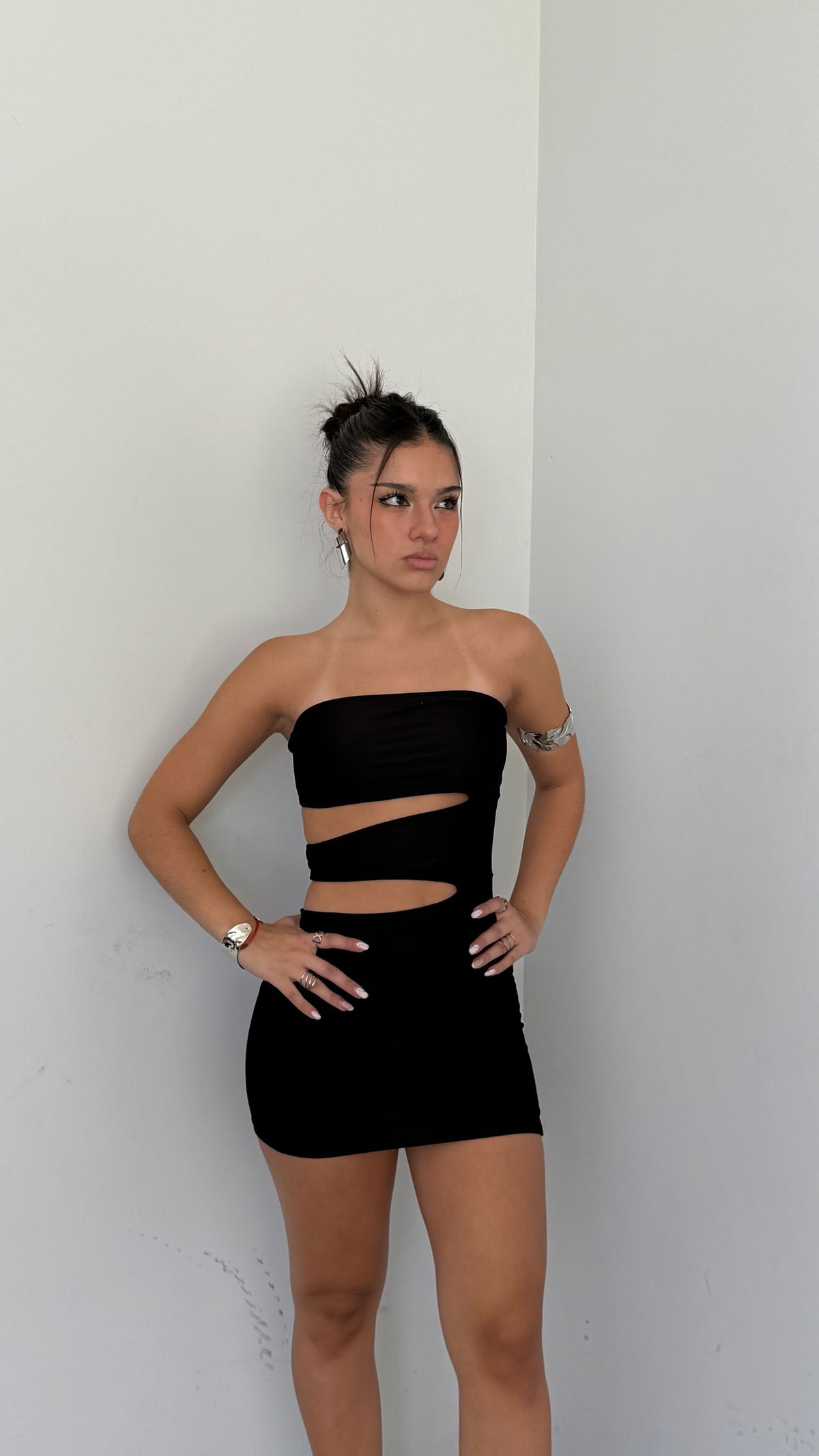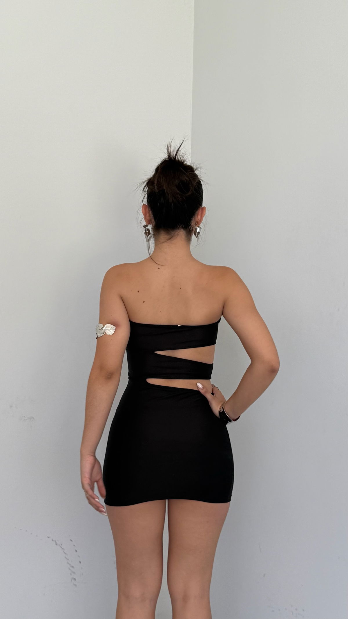 vestido corto strapless cut out