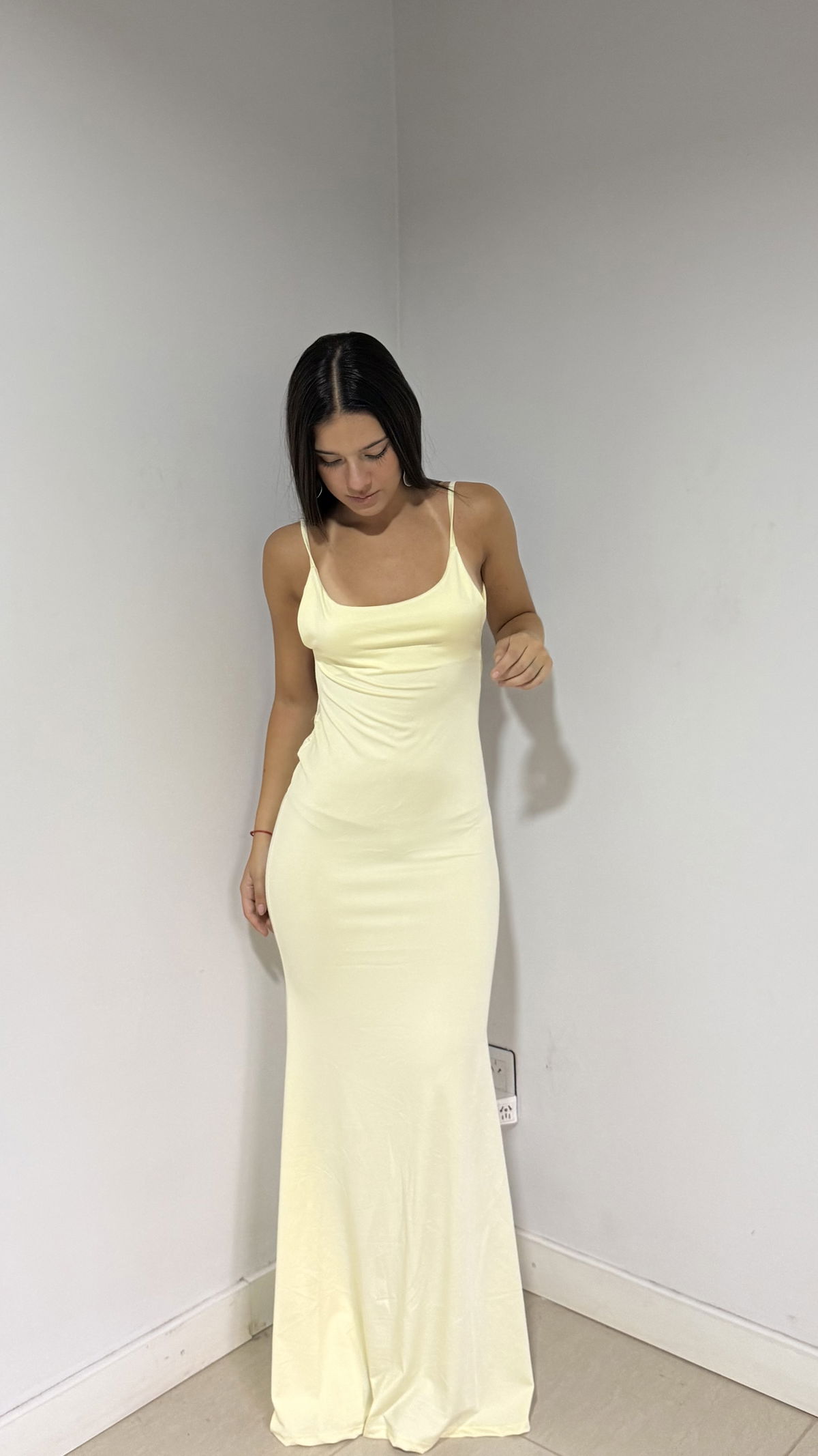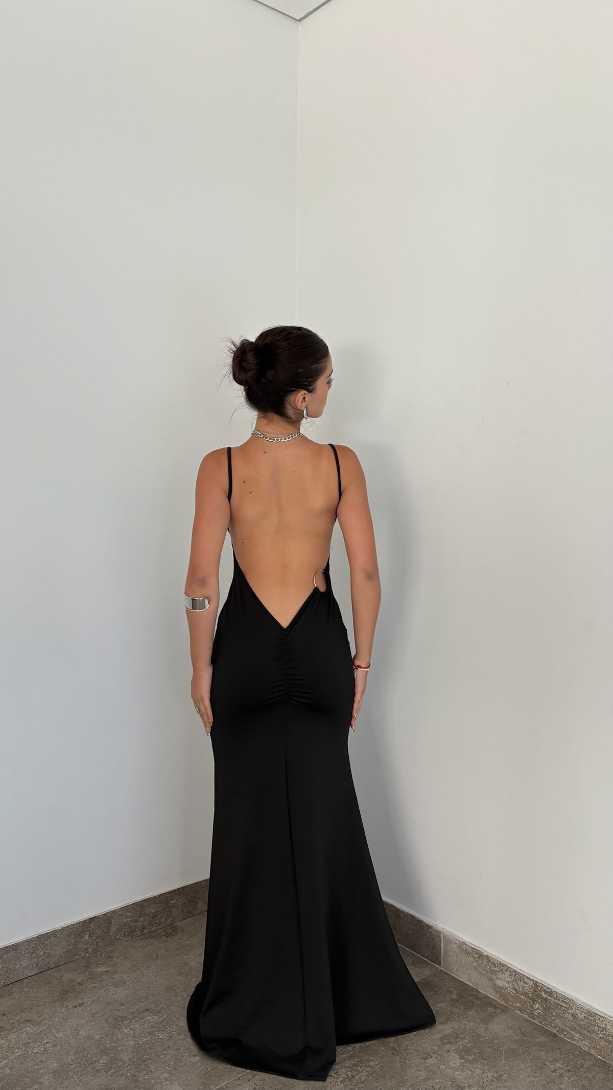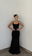 vestido largo con espalda desc y hebilla
