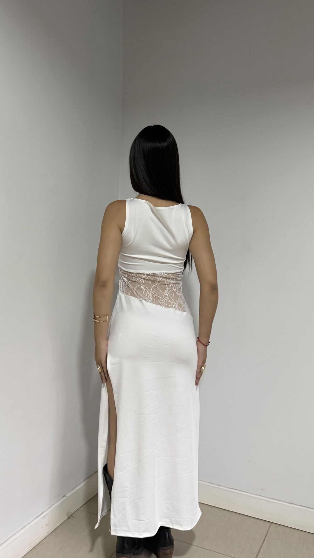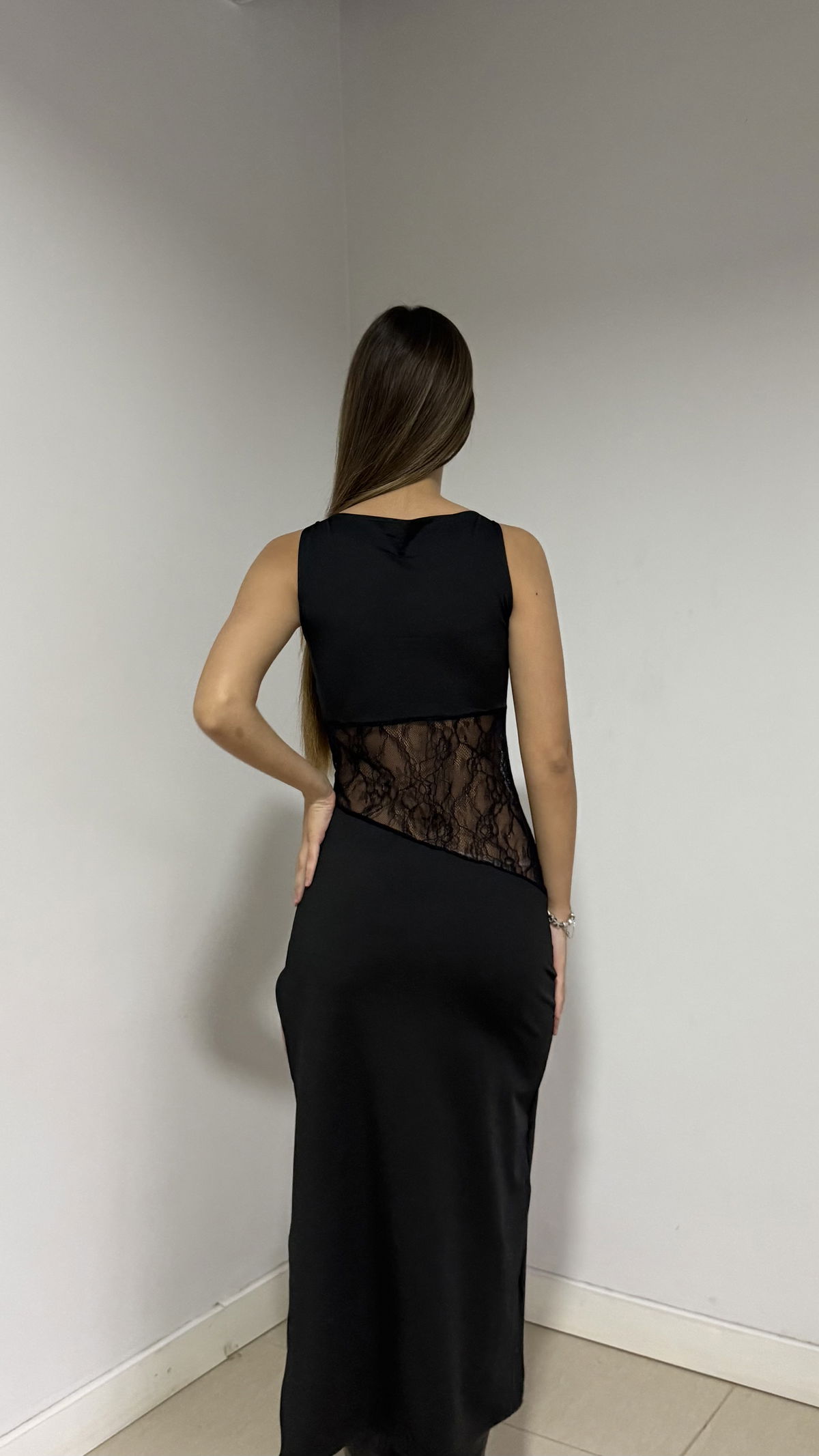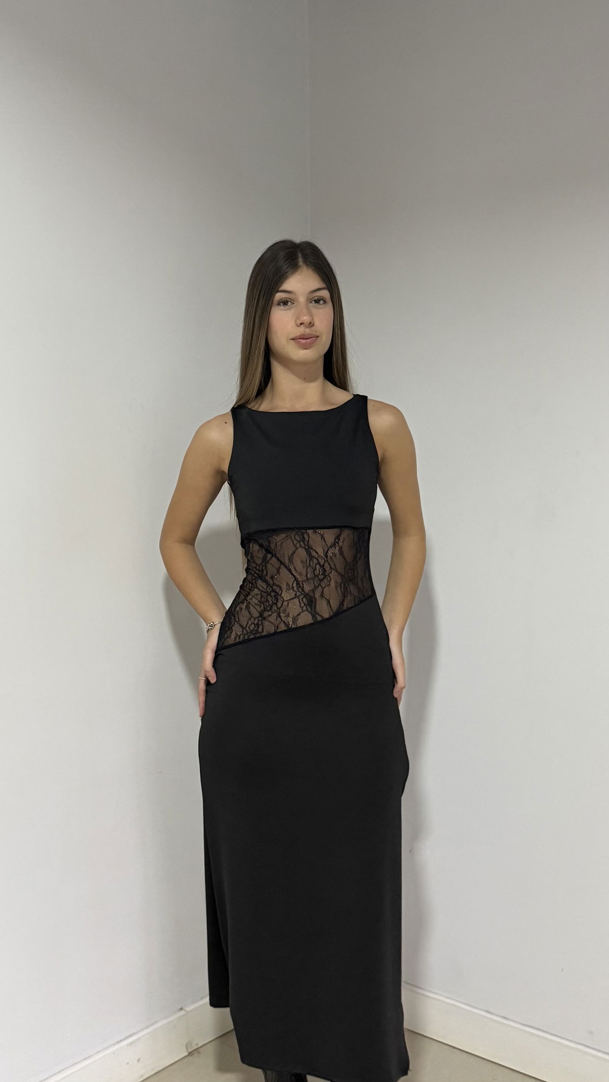 vestido largo básico con detalle de encaje