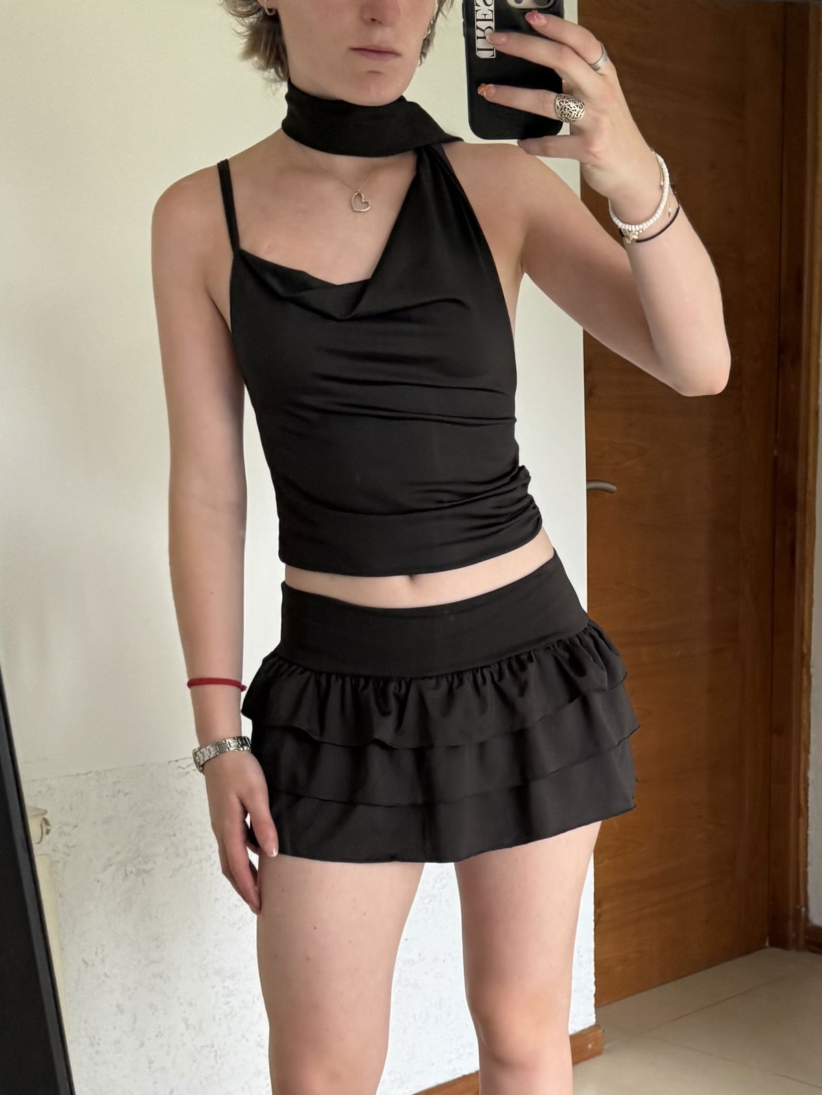 top con buche, bretel y corbata