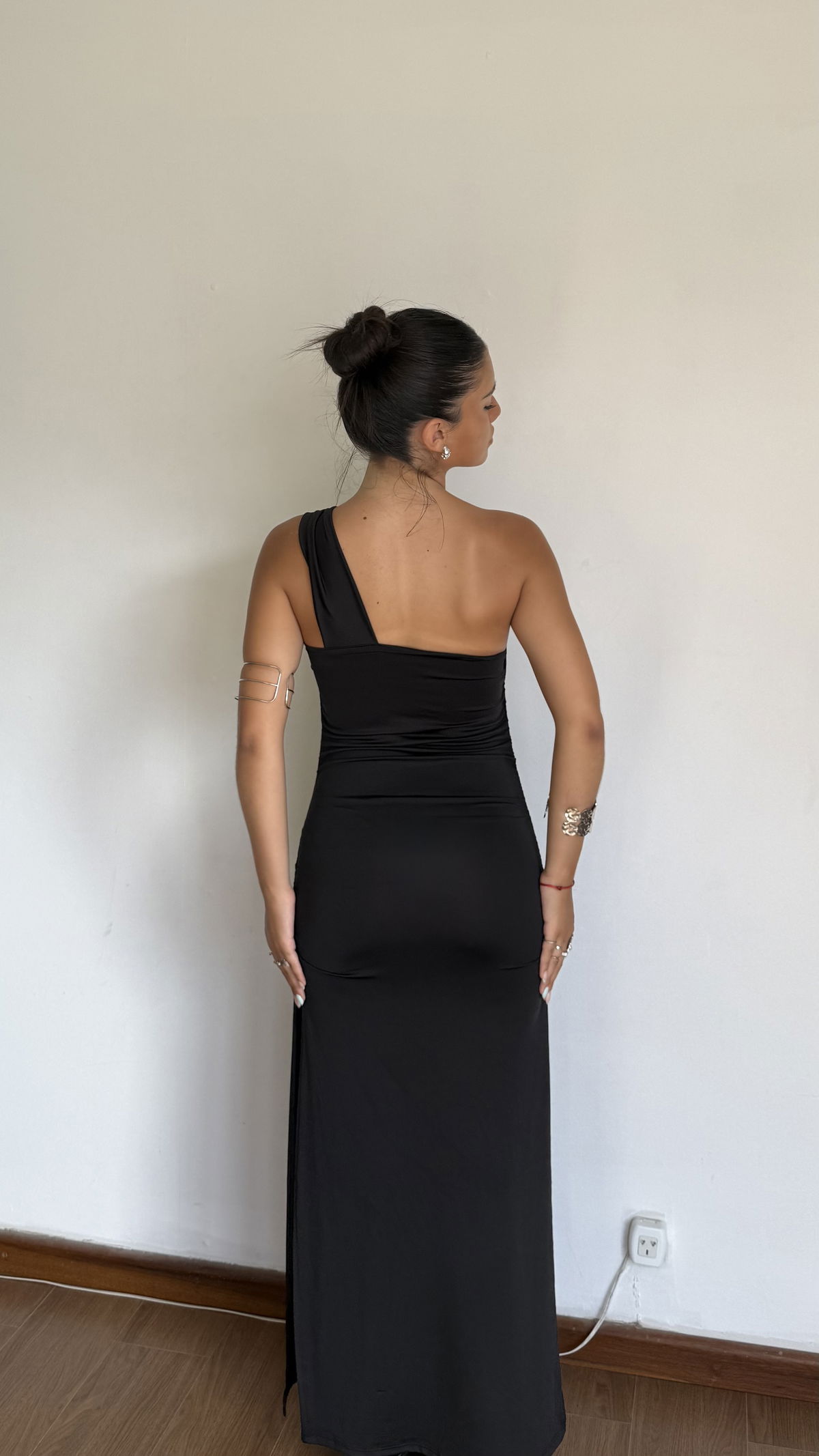 vestido largo un hombro cruzado