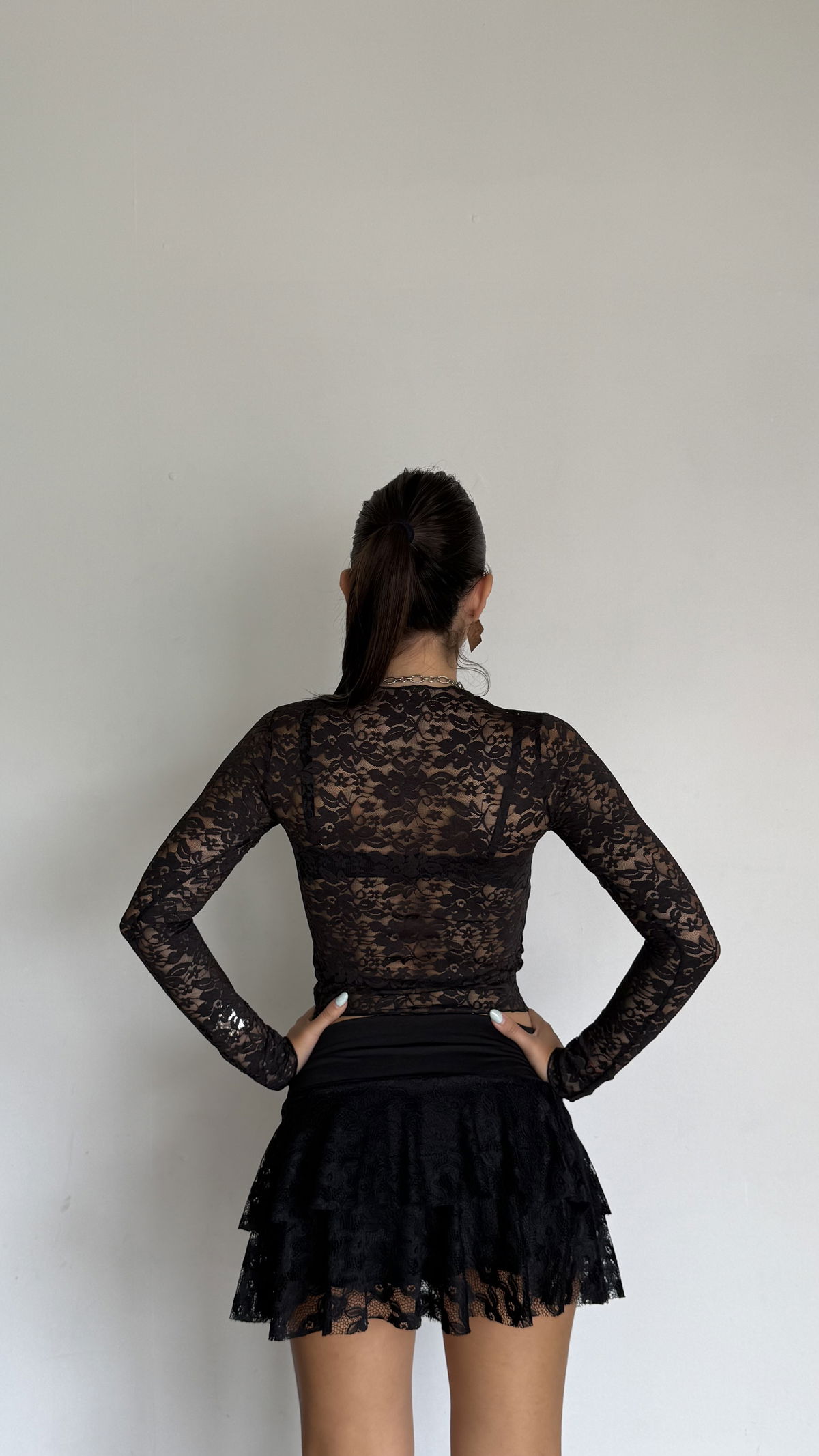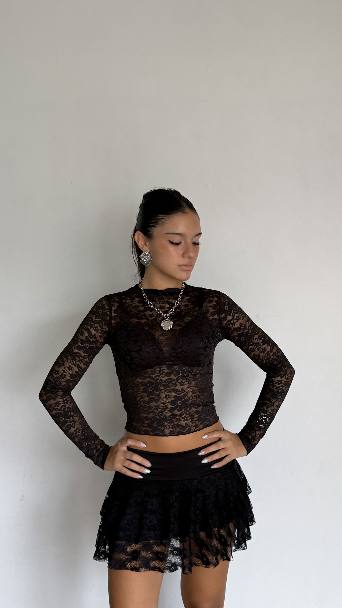 top manga larga de encaje