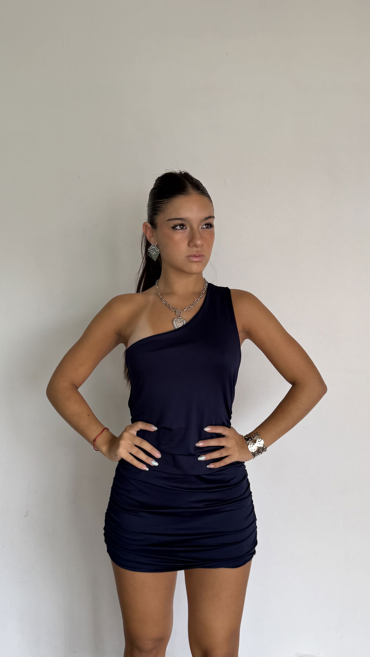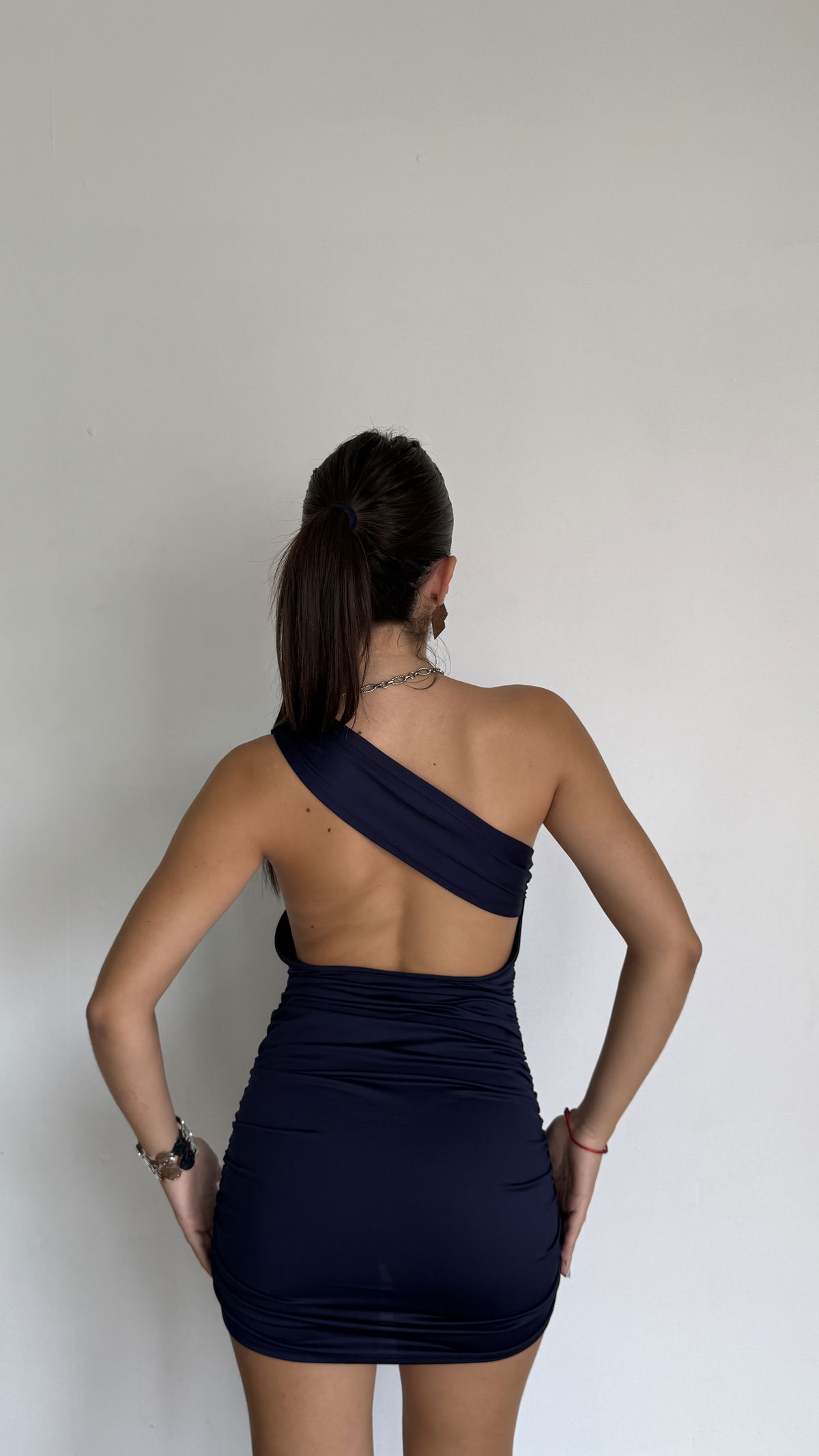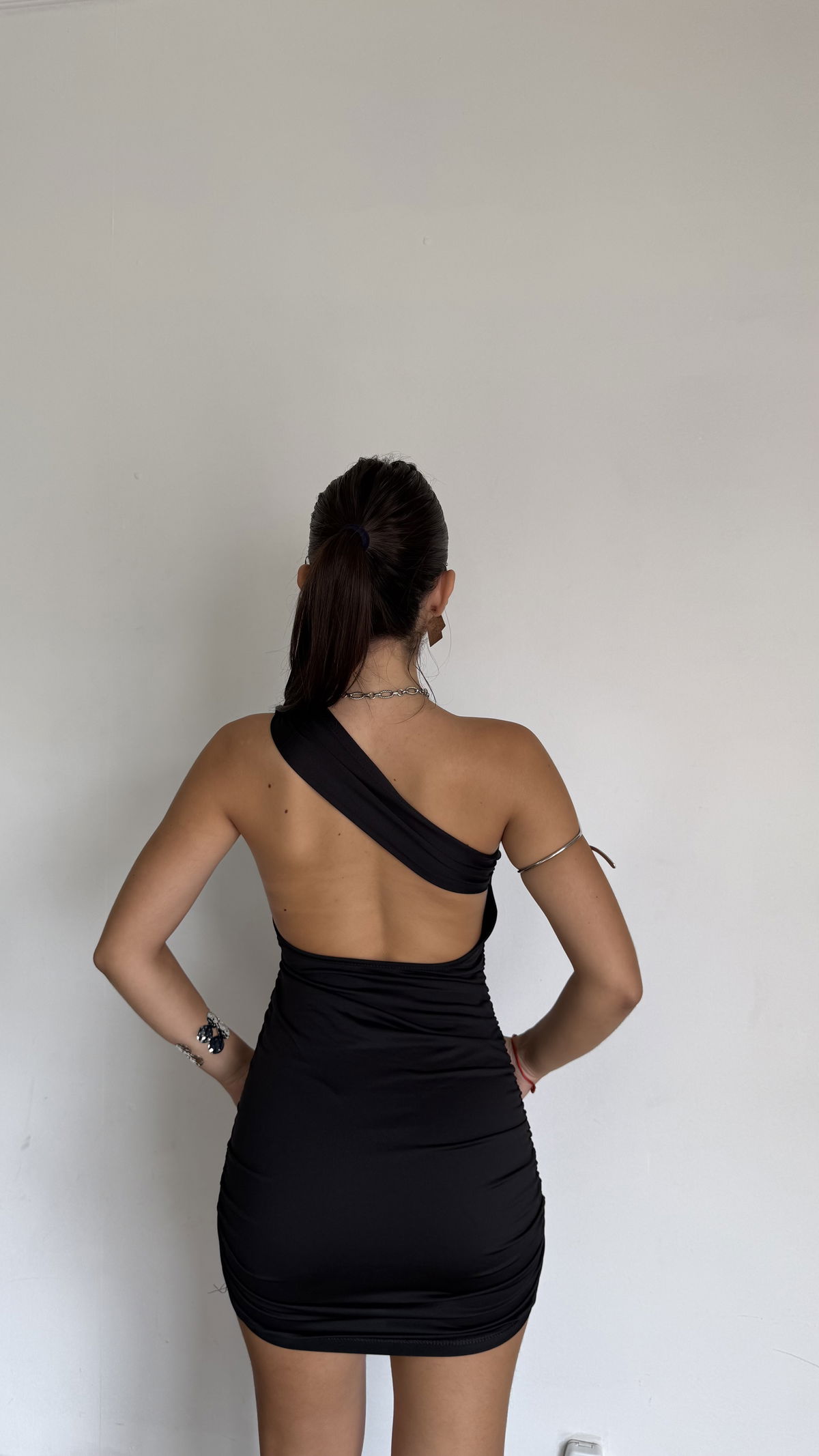 vestido corto un hombro con espalda desc